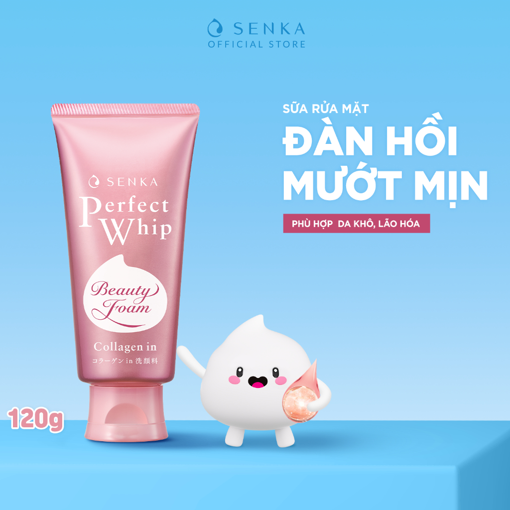 - Sữa Rửa Mặt Tạo Bọt Ẩm Mịn, Săn Chắc Da Senka Perfect Whip Collagen In tinh chất Collagen là một loại protein được tạo thành từ các axit amin, chiếm khoảng 90% các sợi trong lớp da của bạn. Giúp tạo độ đàn hồi cho da, làm mờ nếp nhăn, vết chân chim, hạn chế tình trạng chảy xệ da.