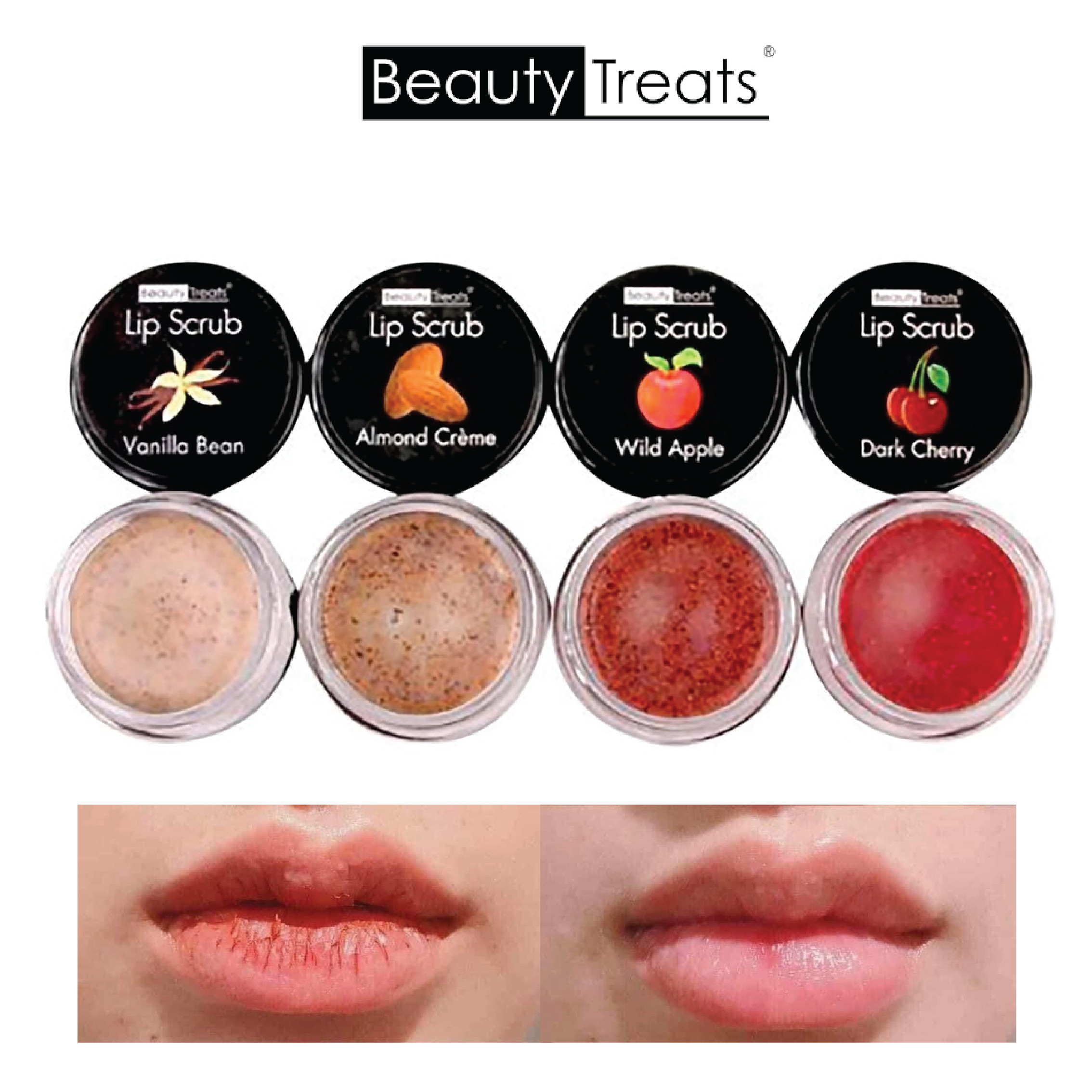 Beauty Treats Lip Scub tẩy tế bào chết cho môi với kết cấu dạng hạt nhỏ giúp tẩy sạch lớp da chết sần sùi hay những lớp son trang điểm còn sót lại một cách nhẹ nhàng mang đến cảm giác mịn màng, ngọt ngào cho đôi môi của bạn. Tẩy da chết Lip Scub nuôi dưỡng làn môi bằng Vitamin E, Bơ Hạt Mỡ, cùng với các thành phần chiết xuất trong quả Lê, quả Nho, hạt dầu Jojoba, và Sáp Copernicia Cerifera làm môi mềm mượt, tươi tắn và tràn đầy sức sống, mang lại cho bạn một bờ môi căng mọng lên màu son đẹp nhất có thể.