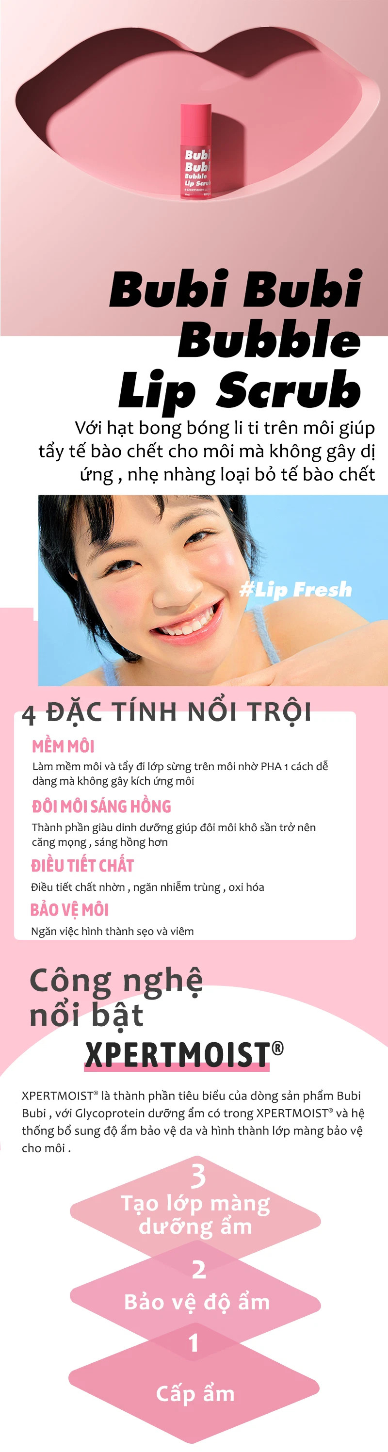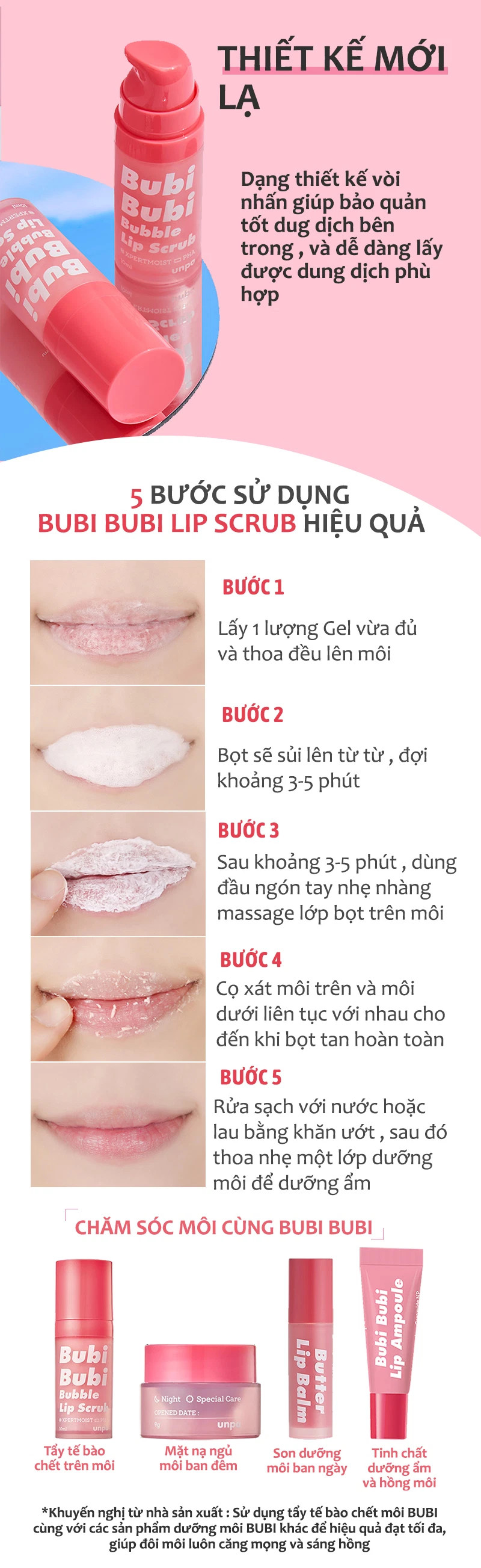 - Tẩy Tế Bào Chết Sủi Bọt Cho Môi Unpa Bubi Bubi Bubble Lip Scrub với phiên bản mới được nâng cấp giúp mang lại hiệu quả tối đa trong việc loại bỏ lớp tế bào da chết gây khô môi, giảm việc kích ứng cho môi mỏng manh nhạy cảm, đồng thời cấp ẩm cho môi với công thức mới mạnh mẽ hơn.