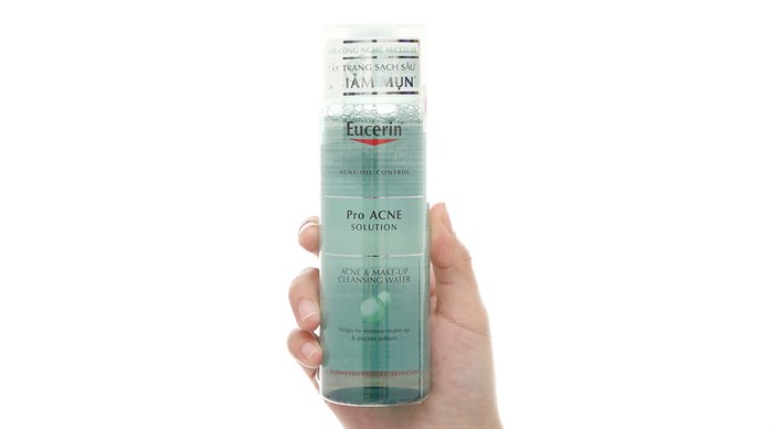 Nước Tẩy Trang Làm Sạch Sâu, Ngăn Ngừa Mụn Eucerin Acne-Oil Control Pro Acne Solution Acne & Make-up Cleansing Water là nước tẩy trang với công nghệ làm sạch Micellar mang lại hiệu quả làm sạch sâu vượt trội, giúp lấy đi bụi bẩn, bã nhờn và lớp trang điểm nhưng vẫn an toàn cho làn da nhạy cảm & dễ kích ứng. Đồng thời chứa thành phần Arginine và Sodium Hyaluronic Acid giúp bổ sung độ ẩm cũng như làm dịu da hiệu quả sau 1 ngày dài thuộc thương hiệu dược mỹ phẩm Eucerin đến từ Đức.
