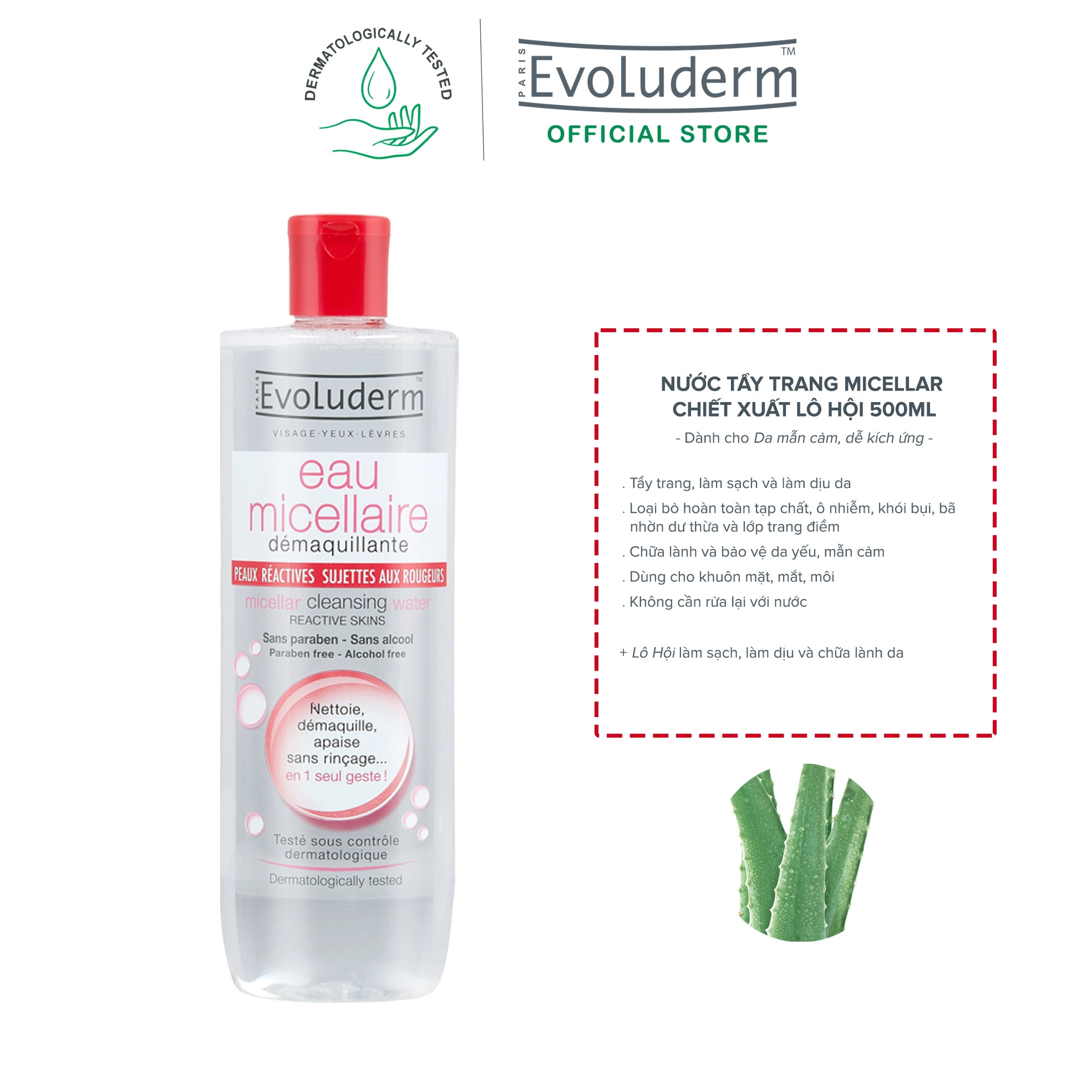 3. Nước Tẩy Trang Cho Da Nhạy Cảm Evoluderm Micellar Cleansing Water Reactive Skins (màu đỏ):