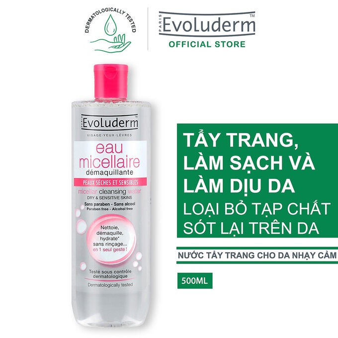 2. Nước Tẩy Trang Cho Da Khô Và Nhạy Cảm Evoluderm Micellar Cleansing Water Dry & Sensitive Skins (màu hồng):