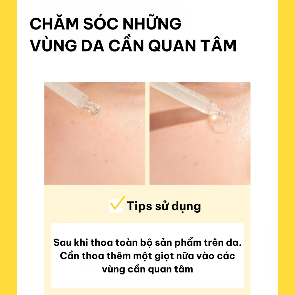 - Dùng 1 lượng tinh chất thoa đều lên da, tập trung ở những vùng da cần được cải thiện.