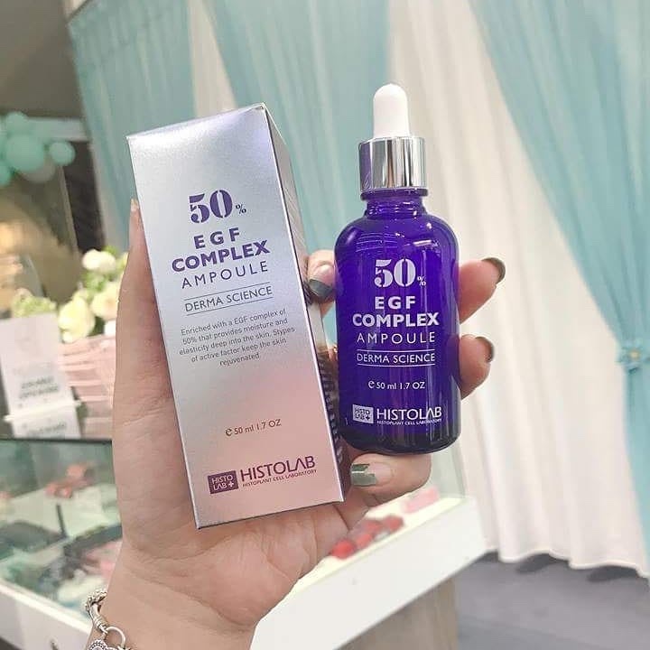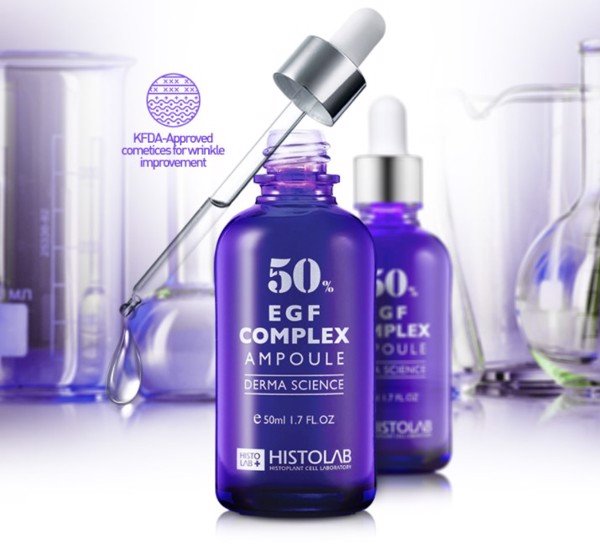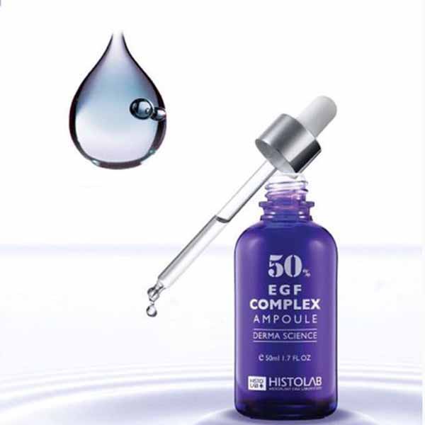 - EGF là một loại protein tự nhiên, có khả năng kích thích tế bào, điều tiết tăng trưởng tế bào và có vai trò quan trọng trong việc sinh sôi cũng như phân tách của tế bào. Hỗn hợp EGF trong tinh chất của Histolab đã được KFDA kiểm nghiệm và chứng minh có khả năng giảm thiểu sự xuất hiện của nếp nhăn, cải thiện tình trạng của các nếp nhăn nhìn thấy được.