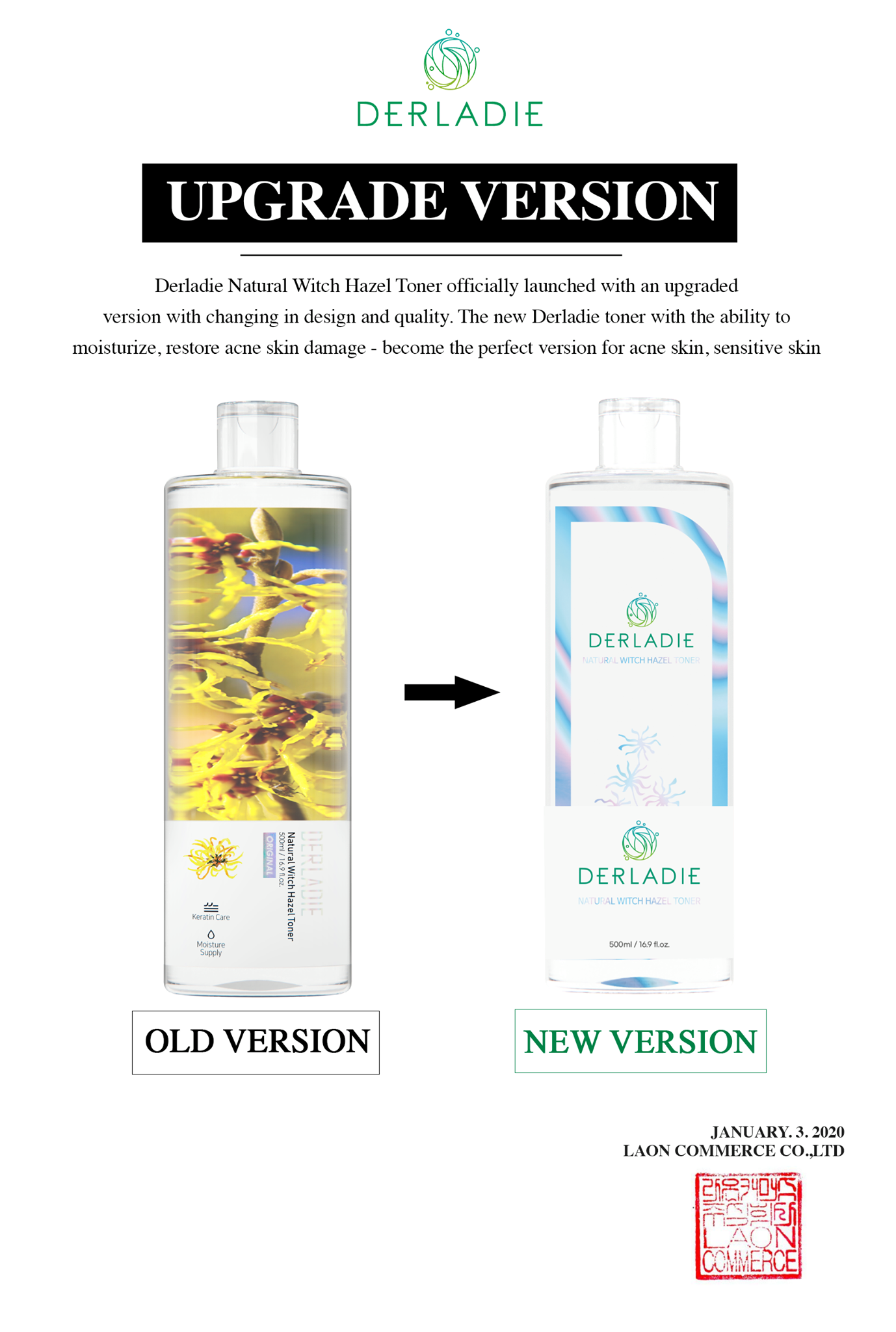 Nước Hoa Hồng DERLADIE Natural Witch Hazel Toner là sản phẩm Toner dành cho da mụn & da nhạy cảm của thương hiệu Derladie xuất xứ Hàn Quốc, với công thức được chiết xuất từ các thành phần thiên nhiên như: cây phỉ, trà xanh, tràm trà, cúc la mã, rau sam, rau má... có tác dụng kháng viêm, giảm sưng, ngăn ngừa và giảm mụn hiệu quả. Bên cạnh đó, sản phẩm còn giúp làm mềm da, hỗ trợ thu nhỏ lỗ chân lông, cung cấp độ ẩm nhẹ dịu và cân bằng độ pH lí tưởng trên da sau bước rửa mặt.