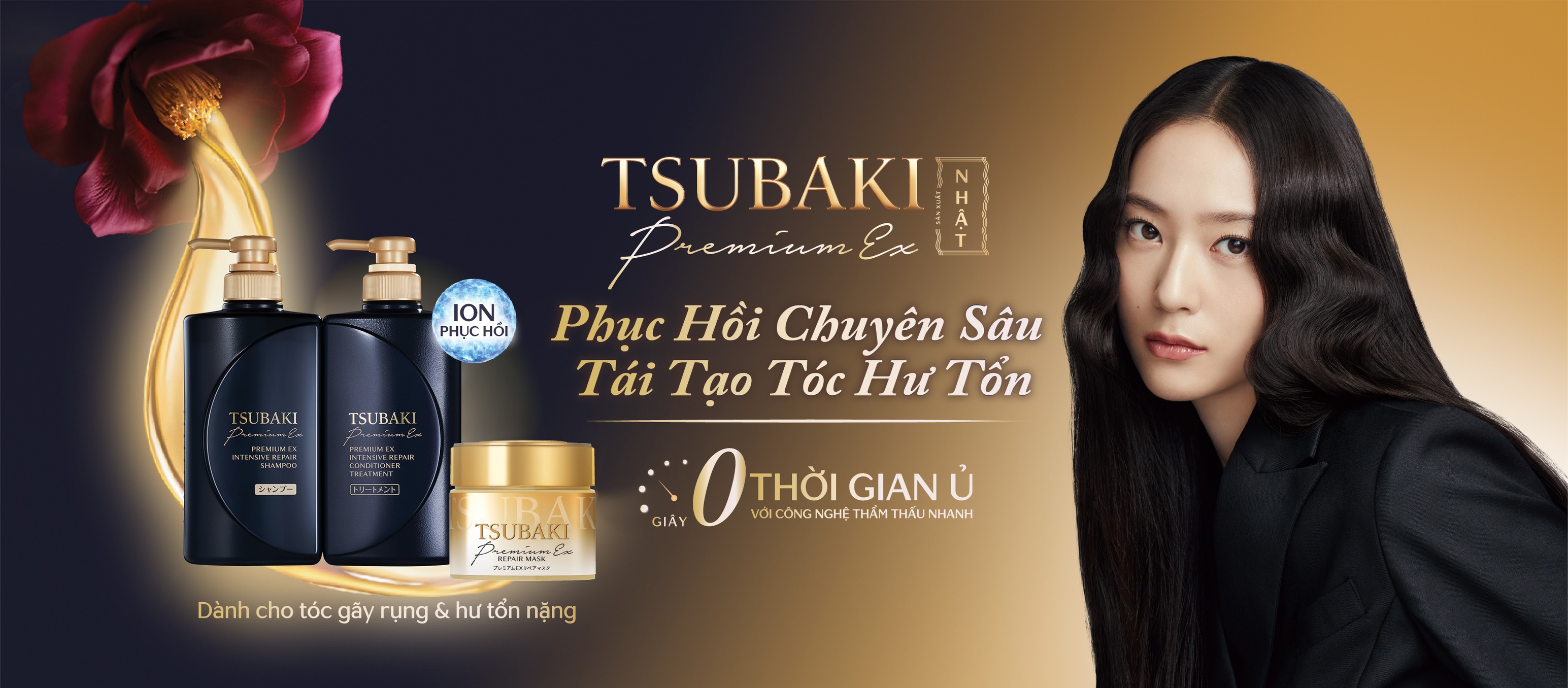 - Thành phần cao cấp từ thiên nhiên Nhật Bản: dầu hoa trà, protein đậu nành, sữa ong chúa giúp bổ sung Lipid và protein thiết yếu cần thiết cho tóc.