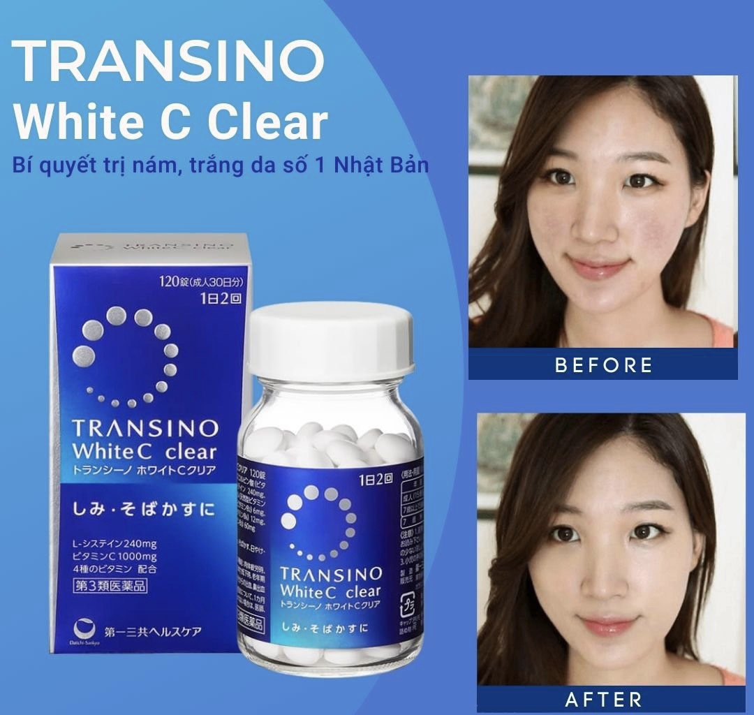 - Sử dụng đều đặn thuốc uống Transino White C Clear là bí quyết để nuôi dưỡng làn da sáng mịn, trẻ trung, đẩy lùi các nốt tàn nhang và nám da xấu xí.