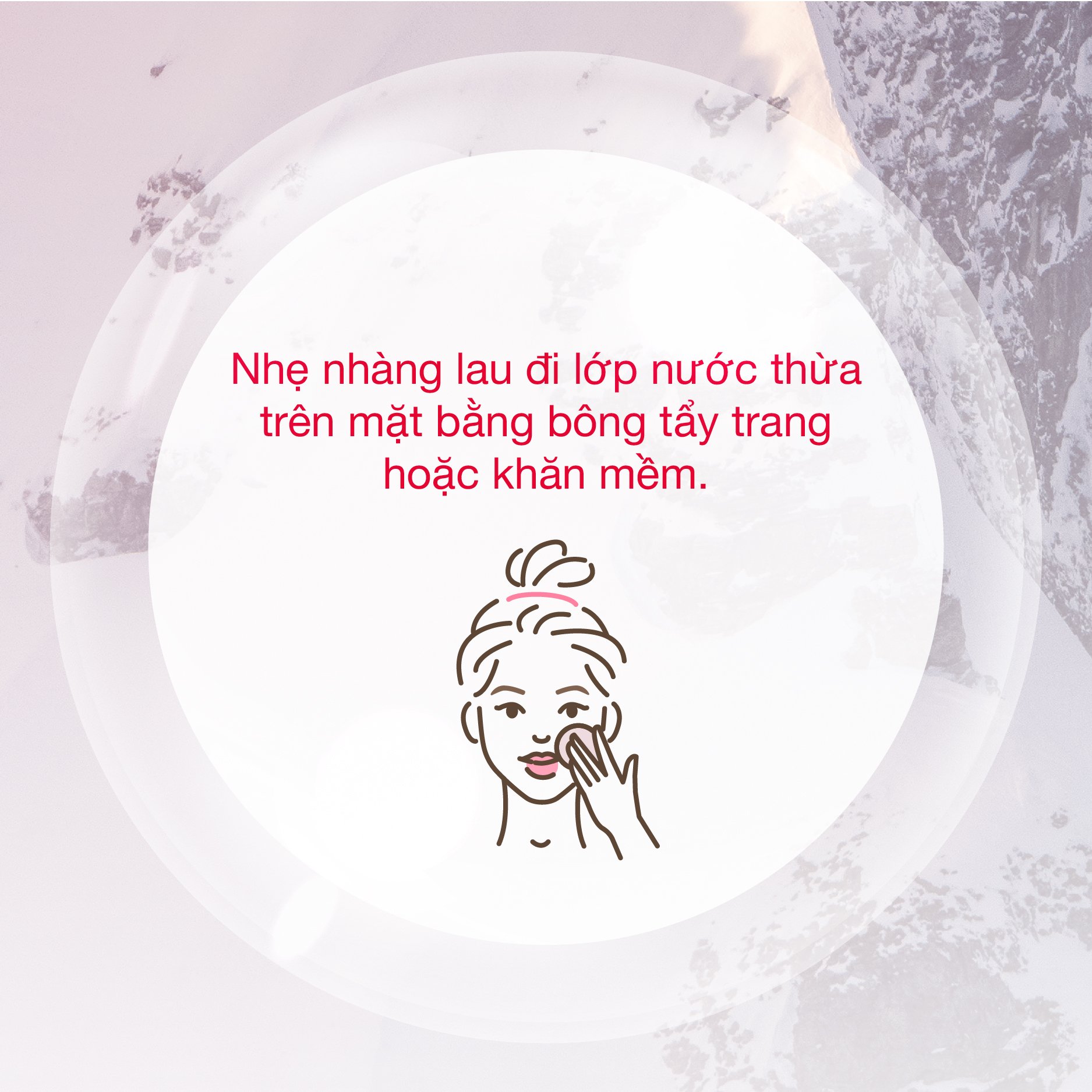 Bước 3: Nhẹ nhàng lau đi lớp nước thừa trên mặt bằng bông tẩy trang hoặc khăn mềm.