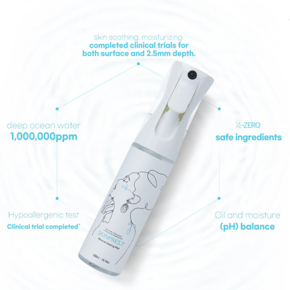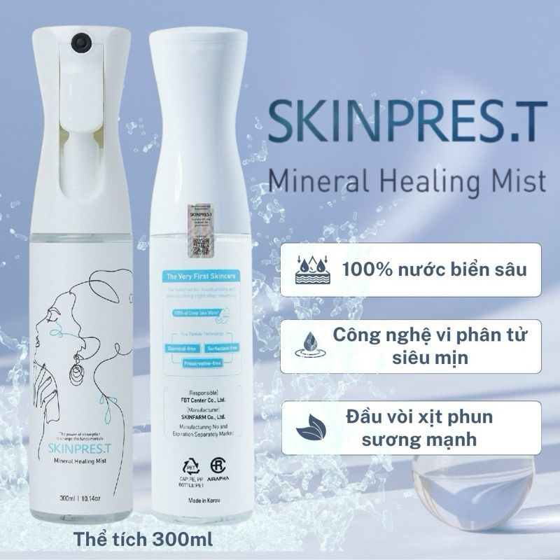 Xịt Khoáng SKINPRES.T Mineral Healing Mist được sản xuất bằng Công nghệ từ tính khoáng, một phương pháp độc quyền được làm từ 100% thành phần khoáng chất của nước biển sâu, giúp làn da của bạn được bảo vệ vững chắc trước các kích thích bên ngoài và chữa lành vấn đề về da.