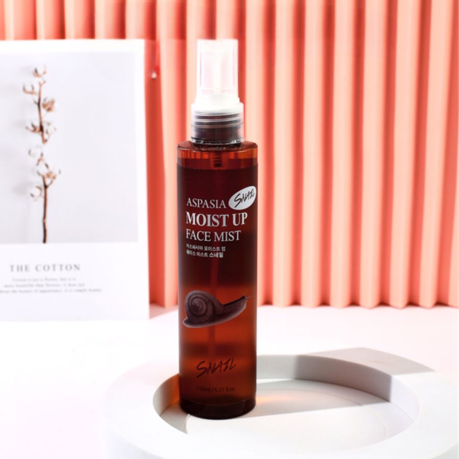 Xịt Khoáng Ốc Sên Aspasia Snail Moist Up Face Mist 150ml đến từ thương hiệu Aspasia là thương hiệu mỹ phẩm đến từ Hàn Quốc, cung cấp độ ẩm tức thì, giúp da luôn căng mọng, mềm mịn suốt cả ngày. Nhờ chiết xuất từ dịch nhầy ốc sên, sản phẩm không chỉ cấp nước mà còn hỗ trợ phục hồi và bảo vệ da trước tác động của môi trường.