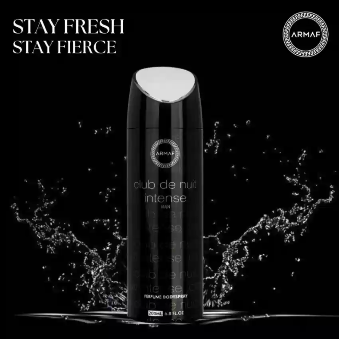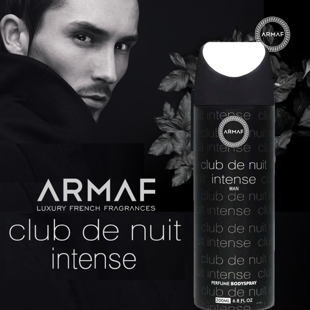 - Nếu bạn đang tìm kiếm một loại xịt khử mùi tuyệt vời, cực kỳ nam tính và bám tốt, thì Armaf Club de nuit là lựa chọn hoàn hảo cho bạn với hương thơm mạnh mẽ và cực cuốn hút. Armaf Club de nuit Intense men đặc biệt cho nam giới sử dụng công nghệ tiên tiến để loại bỏ mùi hôi và giữ cho cơ thể luôn khô ráo và thơm mát.