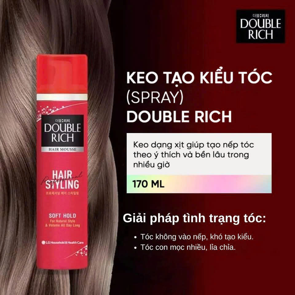 Xịt Tạo Kiểu Tóc Double Rich Hair Spray Strong Hold 170ml là sản phẩm hoàn hảo để tạo kiểu tóc bền lâu và giữ nếp suốt cả ngày. Với công thức mạnh mẽ, sản phẩm không chỉ giúp tóc vào nếp ngay lập tức mà còn bảo vệ tóc khỏi tác động từ thời tiết và giữ độ chắc khỏe, tự nhiên cho mái tóc.